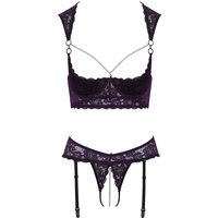 | Hebe plus Straps-String ouvert aus Lila-Stretch-Spitze mit schwarzen Details