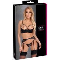 Ein Hebe-Set besteht aus einer Büstenhebe mit einem passendem Höschen. Da die Hebe mit den unverhüllten Brüsten selbst sehr erotisch ist und meist als Reizwäsche getragen wird, wird das Set oft mit einem im Schritt offenem Slip oder String ouvert ergänzt. Auch ein Strapsgürtel mit passenden Strümpfe kann ein Hebe-Set zu einem perfekten sexy Ensembele abrunden.