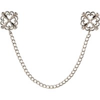 Nippelklemmen gibt es in vielen Variationen, so sind sie zum Beispiel oft mit einer dekorativen Busenkette verbunden oder können auch mit Ketten an einem Halsband befestigt sein.